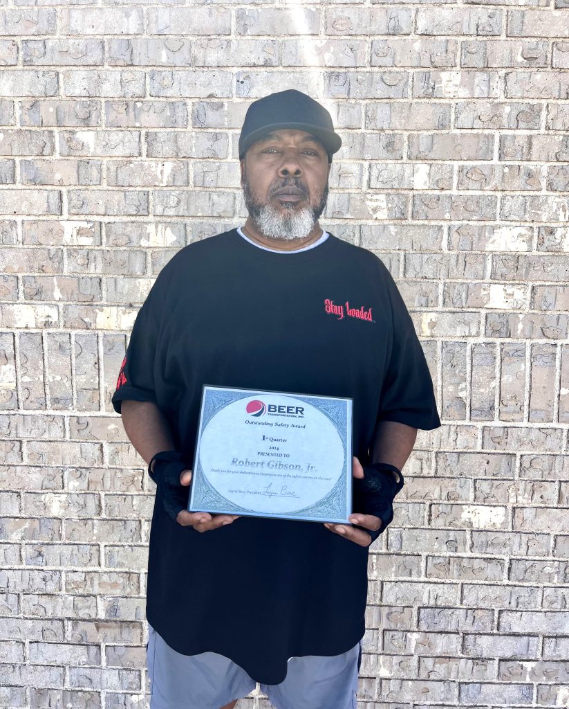 Congratulate Robert Gibson as the 1st quarter of 2024 safety award winner. Robert has done an outstanding job this quarter. He remained violation, accident & incident free all quarter. Thank you for all your hard work and dedication. We are proud to have you apart of the Beer Team!